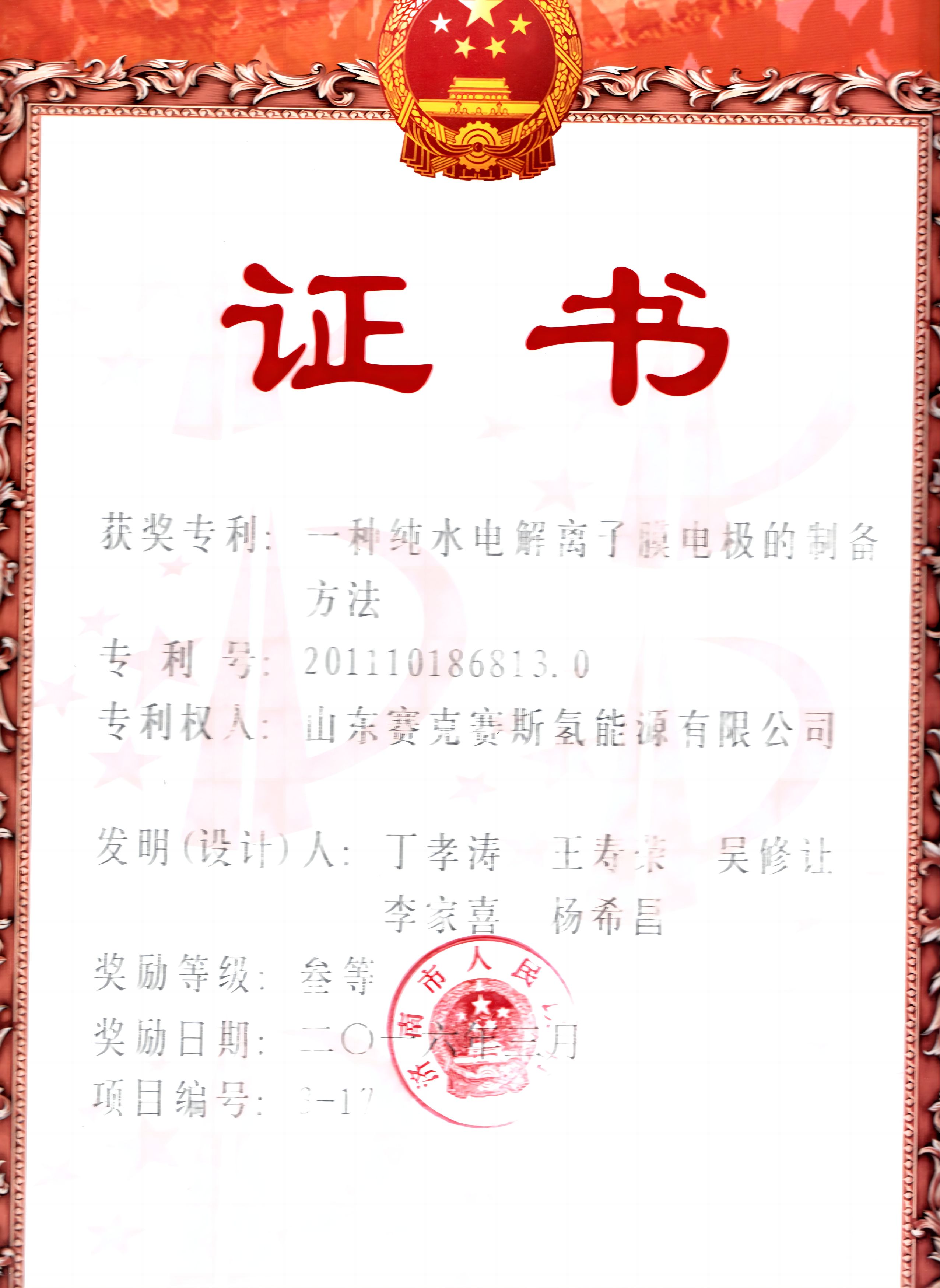 參與“低成本PEM 電解水關(guān)鍵材料制備技術(shù)及其制氫應(yīng)用示范”國家重點研發(fā)計劃重點專項;主持制定PEM純水電解制氫的團(tuán)體標(biāo)準(zhǔn)(T/CAB0084-2021);被認(rèn)定為“山東省瞪羚企業(yè)”。